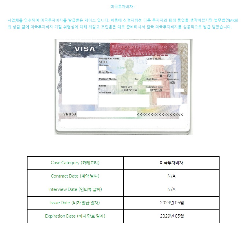 미국투자비자 : 기존 사업체 인수를 통해 비자 발급받은 케이스