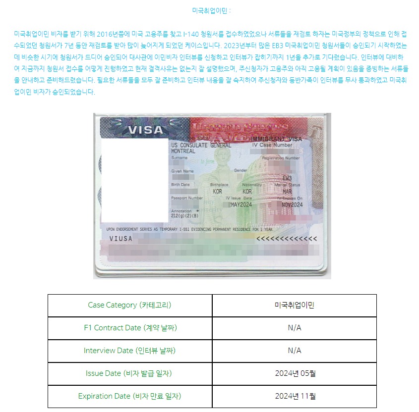 미국취업이민 : 주신청자와 동반가족 모두 비자 승인