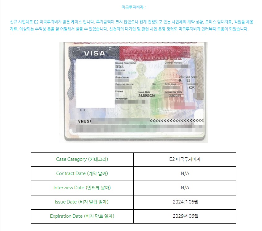 미국투자비자 : 신규사업체로 5년짜리 E2비자 받은 케이스