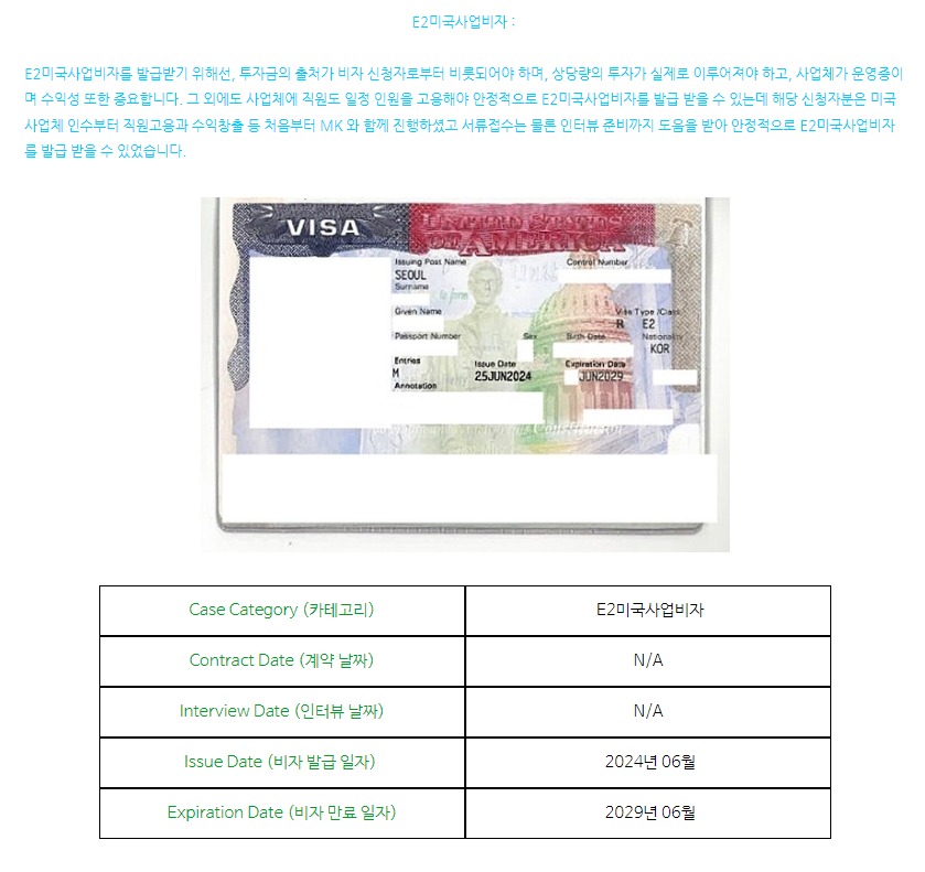 E2미국사업비자 : 직원고용, 사업체 수익창출 등 전반적인 컨설팅을 받아 비자발급 성공