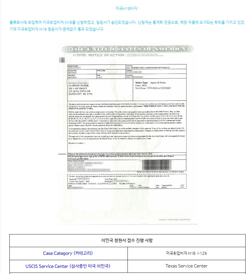 미국H1B비자 : 물류회사 취업하여 미국취업비자 승인받은 케이스