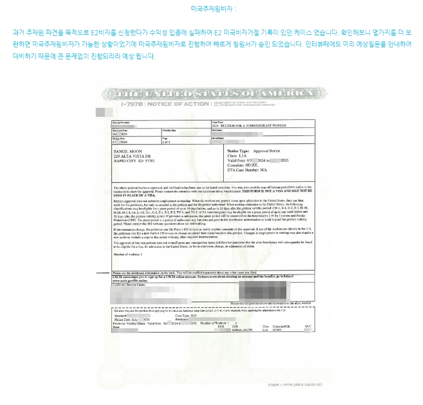 미국주재원비자 : E2투자비자 거절 된후 L1비자 승인