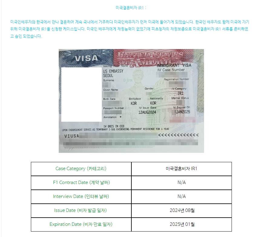 미국결혼비자 IR1 : 초청자에게 재정능력이 없었으나 비자 승인