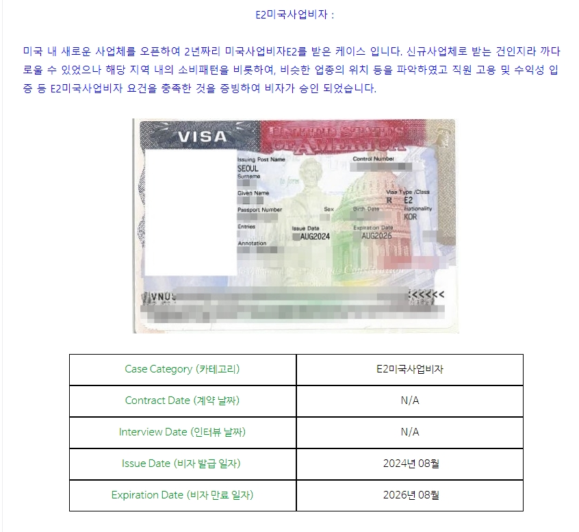 미국사업비자 : 신규사업체를 오픈하여 E2비자받은 케이스