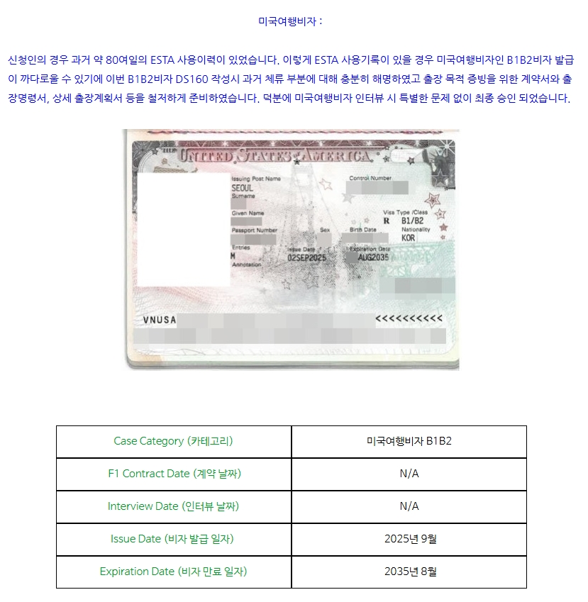 미국B1B2비자 : 밀입국 기록이 있었으나 비자발급 성공