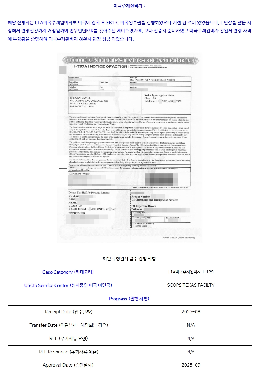 미국주재원비자 : EB1-C 영주권 거절 후에도 L 연장성공