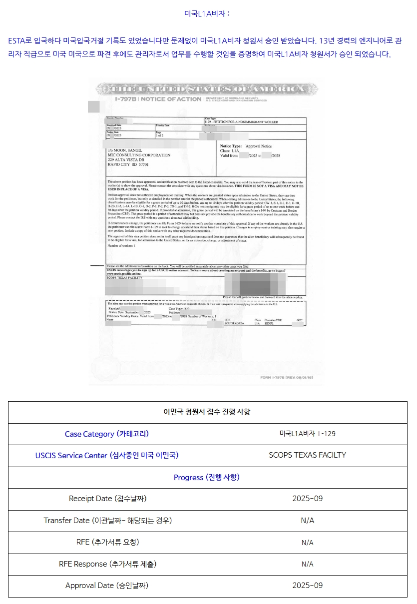 미국L1A비자 : ESTA로 입국때 미국입국거절 된 적있으나 주재원비자 청원서승인