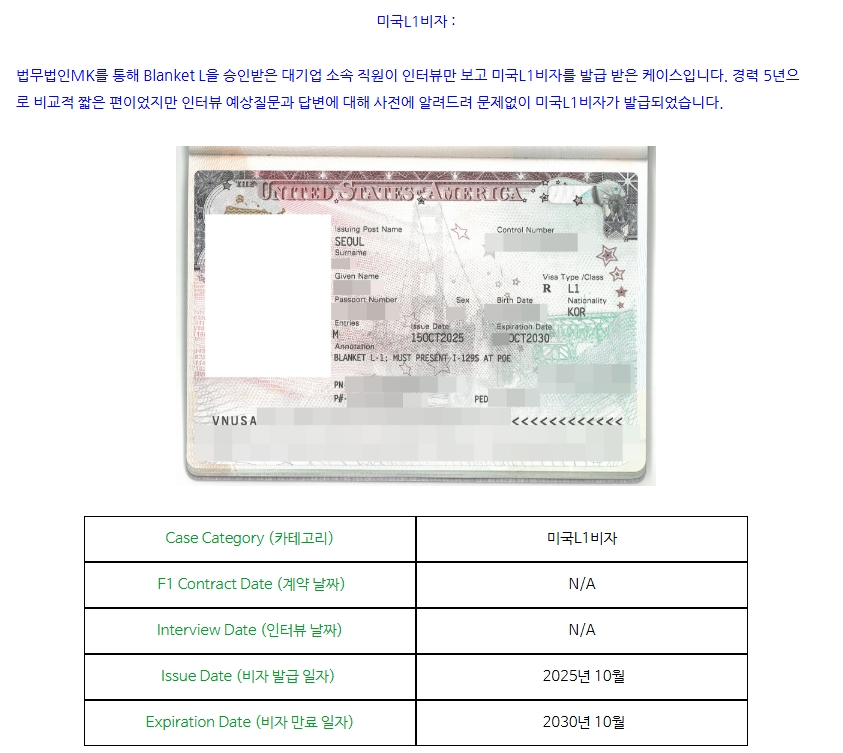 미국L1비자 : 경력 5년차 이지만 주재원비자 발급 성공