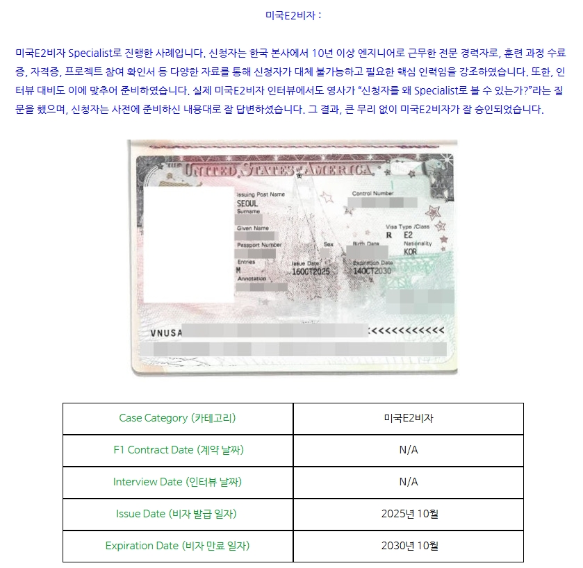 미국E2비자 : Specialist임을 입증하여 비자발급 성공