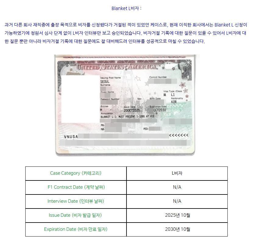 Blanket L비자 : 미국비자거절 기록이 있었지만 문제없이 승인