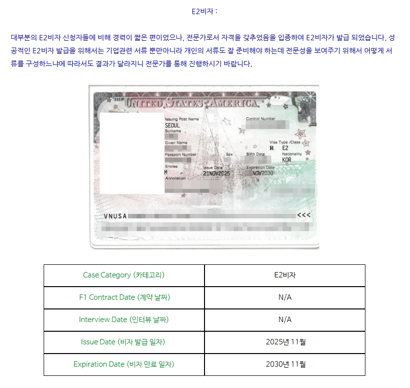 E2비자 : 경력이 짧은 편이었으나 비자발급 성공