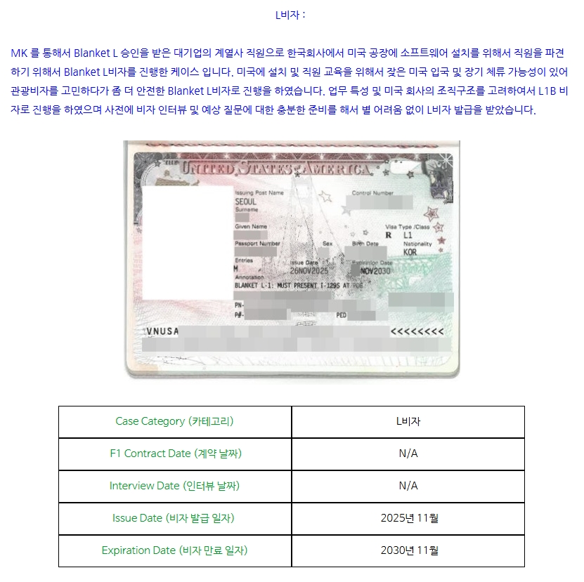 L비자 : 미국공장에 소프트웨어 설치를 위해 주재원비자 받은 케이스