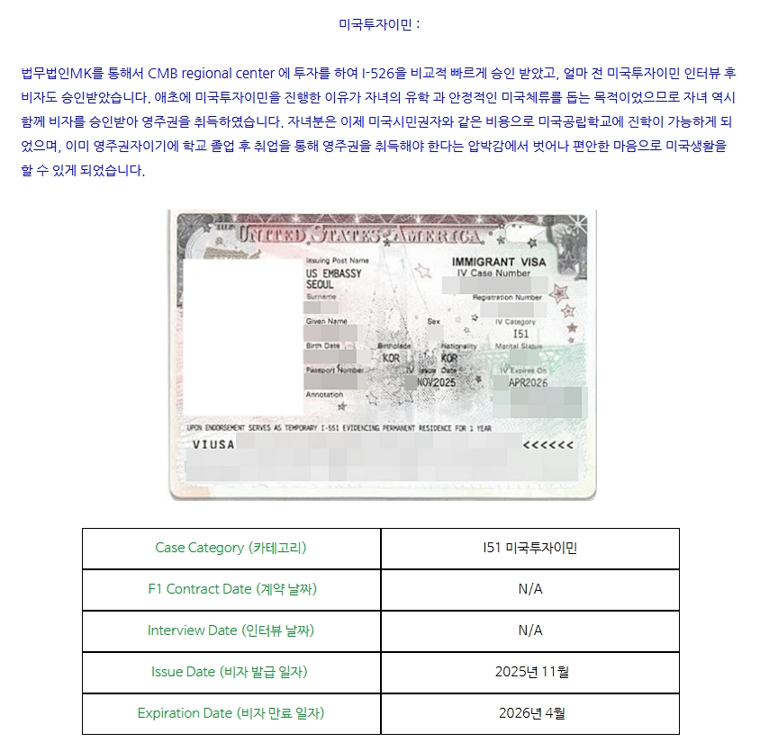 미국투자이민 : 자녀의 유학과 안정적인 미국 체류를 위해 아버지가 EB5영주권을 진행한 케이스