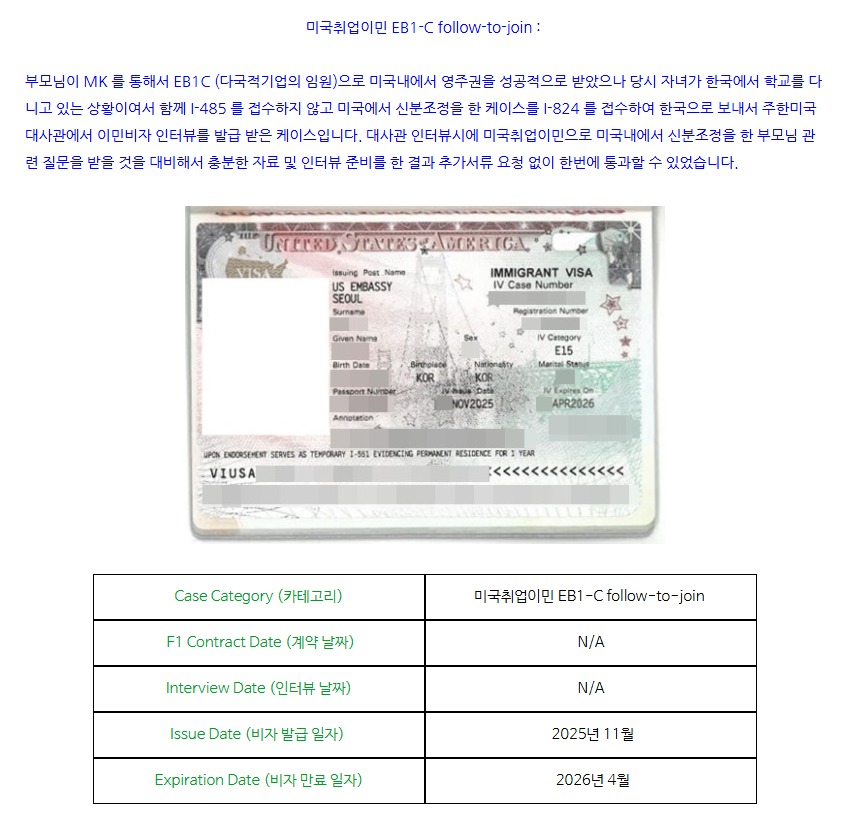 미국취업이민 EB1-C follow-to-join : 한국에 있는 자녀도 함께 영주권발급을 위해 진행